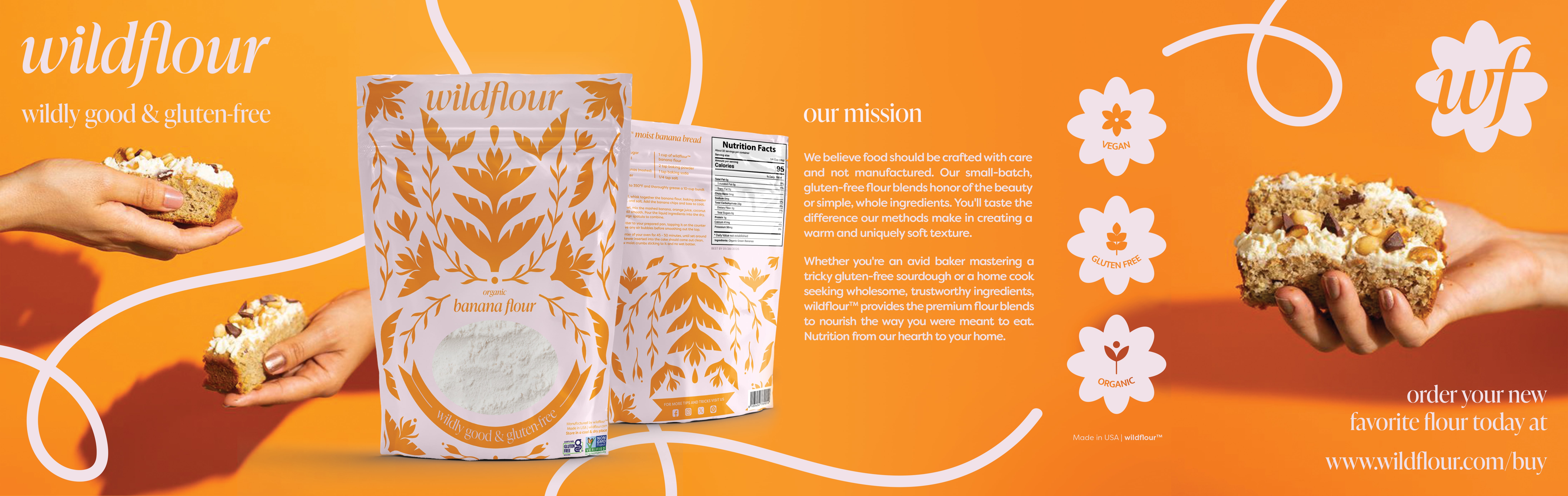 A diverse gluten free flour option with uncommon flavor options & eco-friendly packaging and social media branding to advertise a fun gluten free flour that is not only healthy but for everyone; from avid bakers to the average home chef.